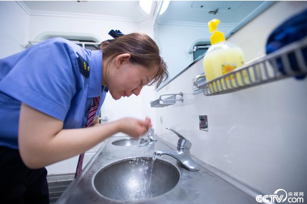 巡檢完畢,李卿茹才走到洗臉間,擰開水龍頭洗把臉,“與其說熱,倒不如說悶,因為完全沒有風(fēng)也沒有空調(diào),列車還在太陽下暴曬。”李卿茹說,雖然每次值守需要在這樣的環(huán)境下工作近8個小時,但是三年下來自己已經(jīng)完全習(xí)慣了。(賈翔)