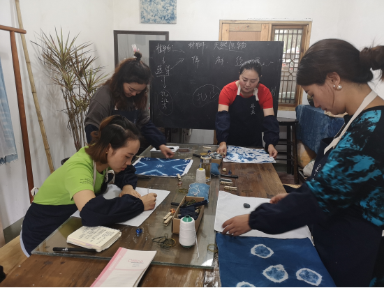 喬進(jìn)雙梅代表(右四)對(duì)繡娘進(jìn)行培訓(xùn)。攝影/李里布
