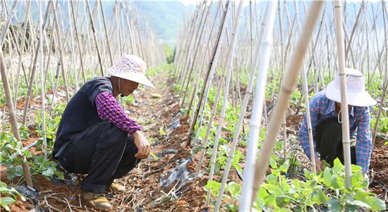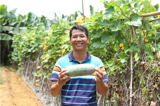 這些年,新立村村民不等不靠,不悲不怨,他們通過翻新土地,大興基建,并利用右江河谷充沛的雨露陽光,將房前屋后的大片沃土種滿了瓜果蔬菜。村民周文革這些年種上了冬瓜和圣女果。夏天,周文革在地里種上冬瓜,到了冬季,土地不用翻新,可繼續(xù)種植圣女果,農(nóng)作物“無縫連接”,全年都有蔬果豐收。同時,還有蔬菜種植專家去到地里指導村民增產(chǎn)增收!捌綍r,農(nóng)活不忙的時候,我還到鎮(zhèn)上做一些零工,一天的工錢有100元。這些年,我的收入一年比一年好!弊罱,周文革的冬瓜迎來了豐收,在地里忙著采摘冬瓜的他笑容也越來越深。