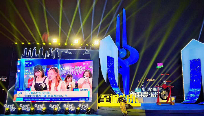 當天的系列活動亮點紛呈。在啟動儀式上,通過中央廣播電視總臺的大屏,現(xiàn)場連線了青島臺東步行街、棗莊臺兒莊古城、煙臺祥隆上市里、青州古街、威海韓樂坊夜市等山東省內(nèi)熱點消費區(qū)域,同步觀看各地活動盛況。