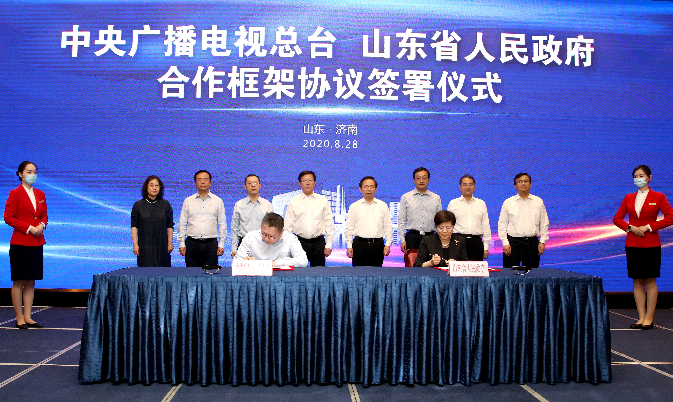 為共同推動總臺和山東高質(zhì)量發(fā)展,助力國內(nèi)大循環(huán),當天,中央廣播電視總臺還與山東省人民政府簽訂了戰(zhàn)略合作框架協(xié)議。雙方將在文化產(chǎn)業(yè)發(fā)展、品牌形象推廣、山東經(jīng)濟社會發(fā)展成就傳播、總臺重點項目落地山東等方面開展專項合作。