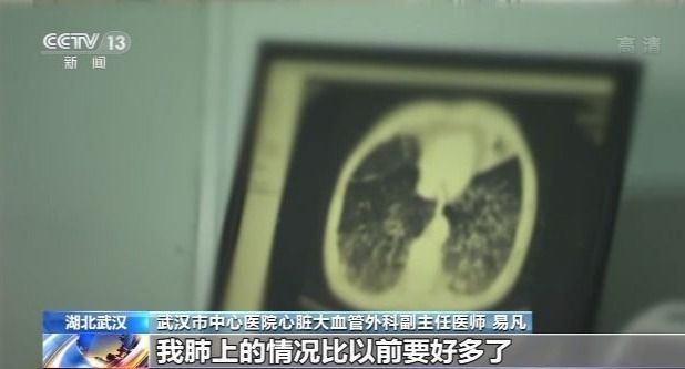 武漢市中心醫(yī)院心臟大血管外科副主任醫(yī)師 易凡:我?guī)е鳨CMO是做了兩次CT,那個(gè)時(shí)候他們就告訴我說,我肺上的情況比以前要好多了,那時(shí)候就,那是對我信心,康復(fù)信心樹立最大的一次。