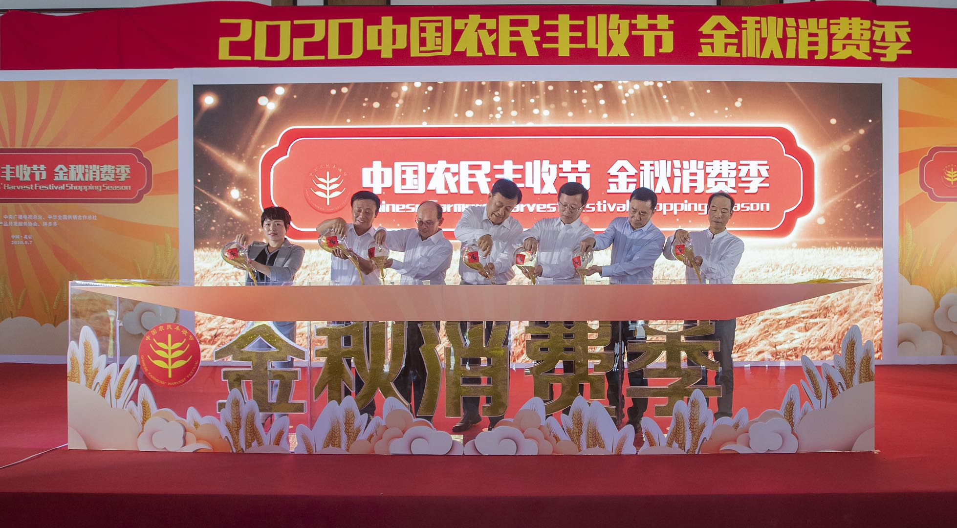 9月7日,由農(nóng)業(yè)農(nóng)村部、中央廣播電視總臺、中華全國供銷合作總社聯(lián)合發(fā)起的2020年中國農(nóng)民豐收節(jié)金秋消費(fèi)季在北京啟動。農(nóng)業(yè)農(nóng)村部副部長于康震、中央廣播電視總臺副臺長蔣希偉、中華全國供銷合作總社理事會副主任鄒天敬,與三位農(nóng)民代表共同開啟“豐收門”。