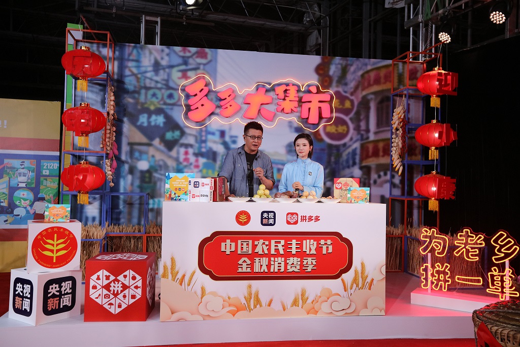 活動啟動儀式后,由中央廣播電視總臺新聞新媒體中心、農(nóng)業(yè)農(nóng)村節(jié)目中心共同組織的“金秋消費(fèi)季”首場直播帶貨活動——“慶豐收 為老鄉(xiāng)拼一單”直播特別節(jié)目順利舉行。央視多名主持人、地方市縣負(fù)責(zé)人及來自全國東西南北中五大區(qū)域的“三農(nóng)”人物通過“央視新聞”“央視三農(nóng)”融媒體矩陣,帶領(lǐng)廣大網(wǎng)民看豐收中華大地,品優(yōu)質(zhì)農(nóng)產(chǎn)品。消費(fèi)者通過拼多多平臺領(lǐng)取豐收券,購買豐收節(jié)專區(qū)相關(guān)補(bǔ)貼農(nóng)副產(chǎn)品。9月至11月,中央廣播電視總臺聯(lián)合農(nóng)業(yè)農(nóng)村部、中華全國供銷合作總社還將開展12場“金秋消費(fèi)季”系列直播活動。