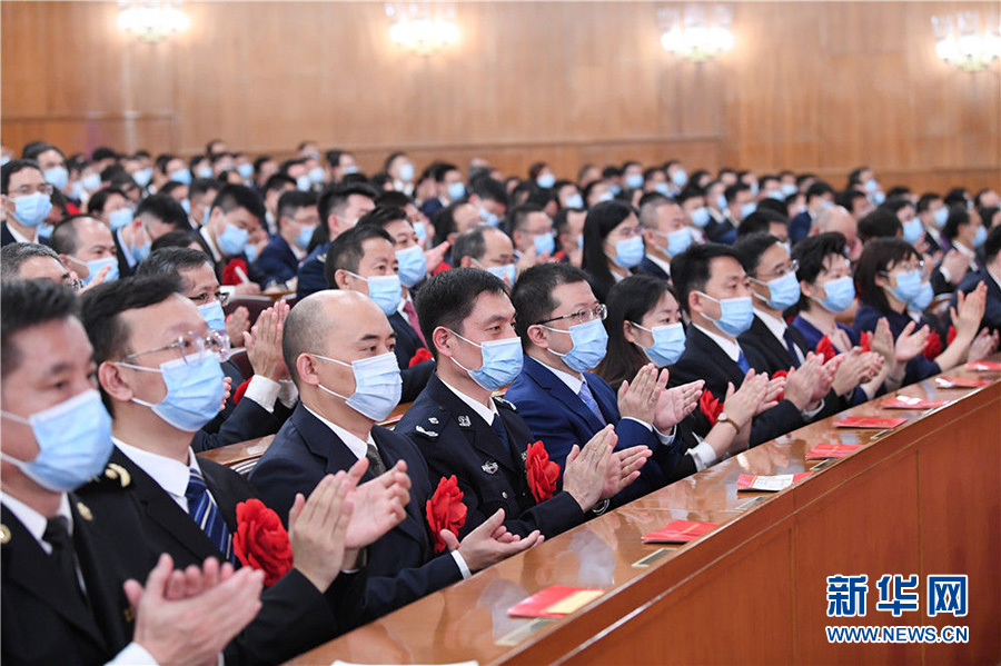 隨后,大會對全國抗擊新冠肺炎疫情先進個人和先進集體、全國優(yōu)秀共產(chǎn)黨員和全國先進基層黨組織進行了表彰。受表彰的個人和集體代表胸戴大紅花,走上主席臺,從習近平等黨和國家領(lǐng)導人手中接過獎章、證書、獎牌。