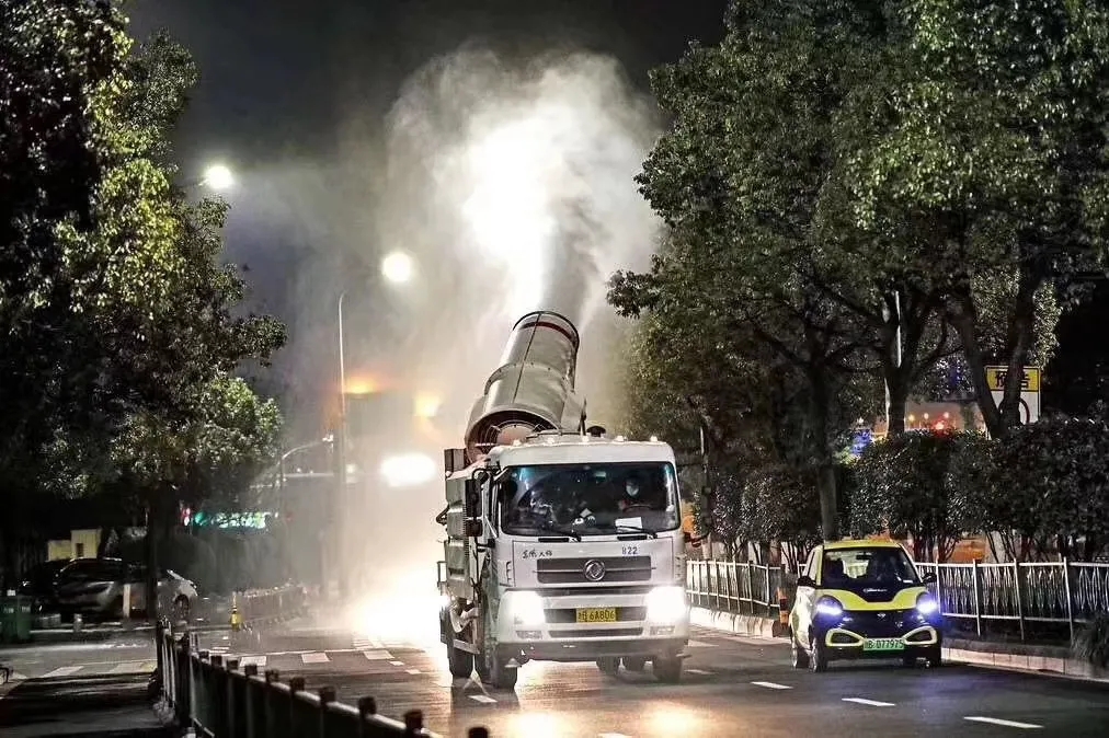 ▲東風(fēng)集團(tuán)等駐鄂央企在自身疫情防控壓力巨大的情況下,第一時(shí)間積極投身戰(zhàn)疫一線。圖為東風(fēng)消殺車。
