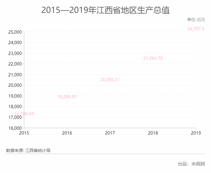 圖一:2015—2019年江西省地區(qū)生產(chǎn)總值
