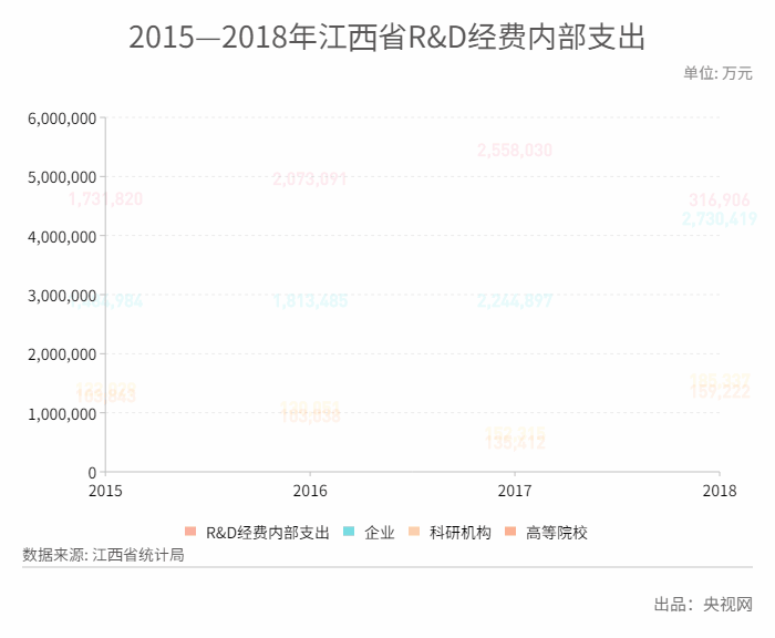圖九:2015—2018年江西省R&D經(jīng)費(fèi)內(nèi)部支出