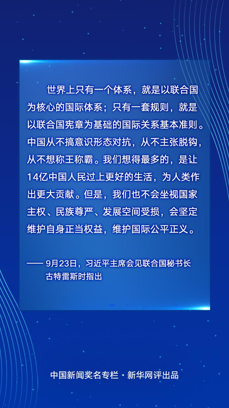 中國是聯(lián)合國的堅定支持者。無論國際形勢如何風(fēng)云變幻,中國始終堅定站在歷史正確的一邊,做世界和平的建設(shè)者、全球發(fā)展的貢獻者、國際秩序的維護者,推動聯(lián)合國事業(yè)和人類和平發(fā)展事業(yè)不斷開拓前進。中國理念、中國行動,與聯(lián)合國所倡導(dǎo)的多邊主義等原則高度契合,與和平、發(fā)展、合作、共贏的時代潮流相適應(yīng)。在第75屆聯(lián)合國大會期間,中國就人類將面對什么樣的世界、世界需要什么樣的聯(lián)合國等重大問題闡述中國立場、提出中國方案,用中國智慧、中國行動為聯(lián)合國發(fā)展、世界和平與繁榮作出新的中國貢獻。中國期待同各國一道,建設(shè)一個強有力的聯(lián)合國,推動構(gòu)建人類命運共同體,讓14億中國人民過上更好的生活,為人類作出更大貢獻。
