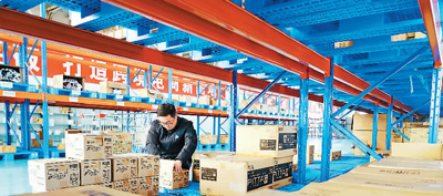 河北省唐山市充分發(fā)揮面向東北亞和輻射京津冀兩大區(qū)位優(yōu)勢,建設(shè)跨境電子商務(wù)綜合試驗區(qū),取得良好效果。圖為在唐山京唐港區(qū)保稅物流中心,跨境電商企業(yè)工作人員正整理貨物。
