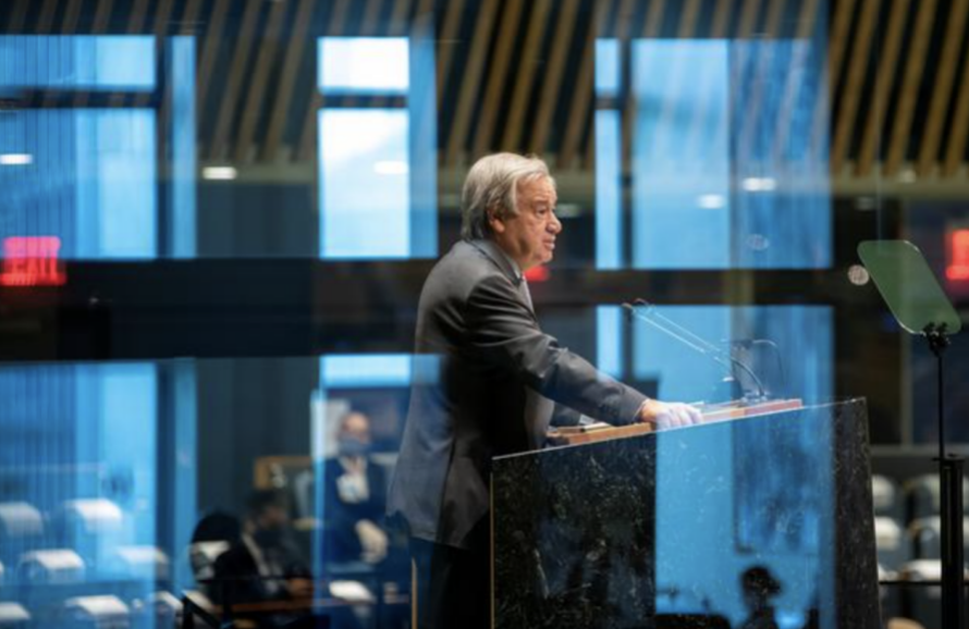 安東尼奧·古特雷斯在聯(lián)合國(guó)大會(huì)上發(fā)言(圖片來源:路透社)
