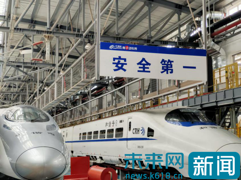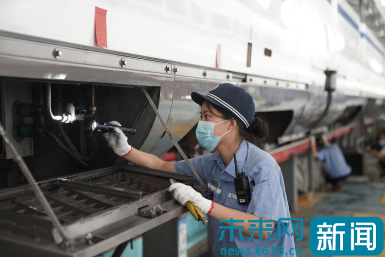 車間工作人員正在檢修列車。(未來網(wǎng)記者齊越云 攝)