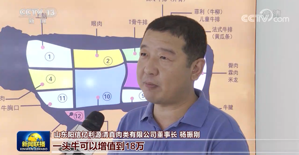 降低了成本,又能讓牛吃飽吃好,提升牛肉品質(zhì),激發(fā)了養(yǎng)殖戶的積極性?蓚鹘y(tǒng)的屠宰方式已經(jīng)越來越不適應(yīng)高端市場的需求。為此,陽信縣扶持起一批種養(yǎng)加一體、一二三產(chǎn)業(yè)融合的龍頭企業(yè)。一頭牛進(jìn)入現(xiàn)代化的屠宰流水線,很快就能完成精細(xì)分割和包裝,根據(jù)肉的部位和用途不同,最多能形成200多種產(chǎn)品。