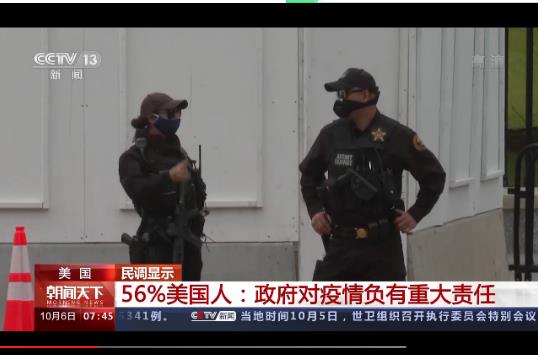 據(jù)美聯(lián)社10月5日報道,美國最新一項民調(diào)結(jié)果顯示,56%的美國人認為,美國長時間深陷于新冠肺炎疫情危機,美國政府對這一局面負有重大責任。