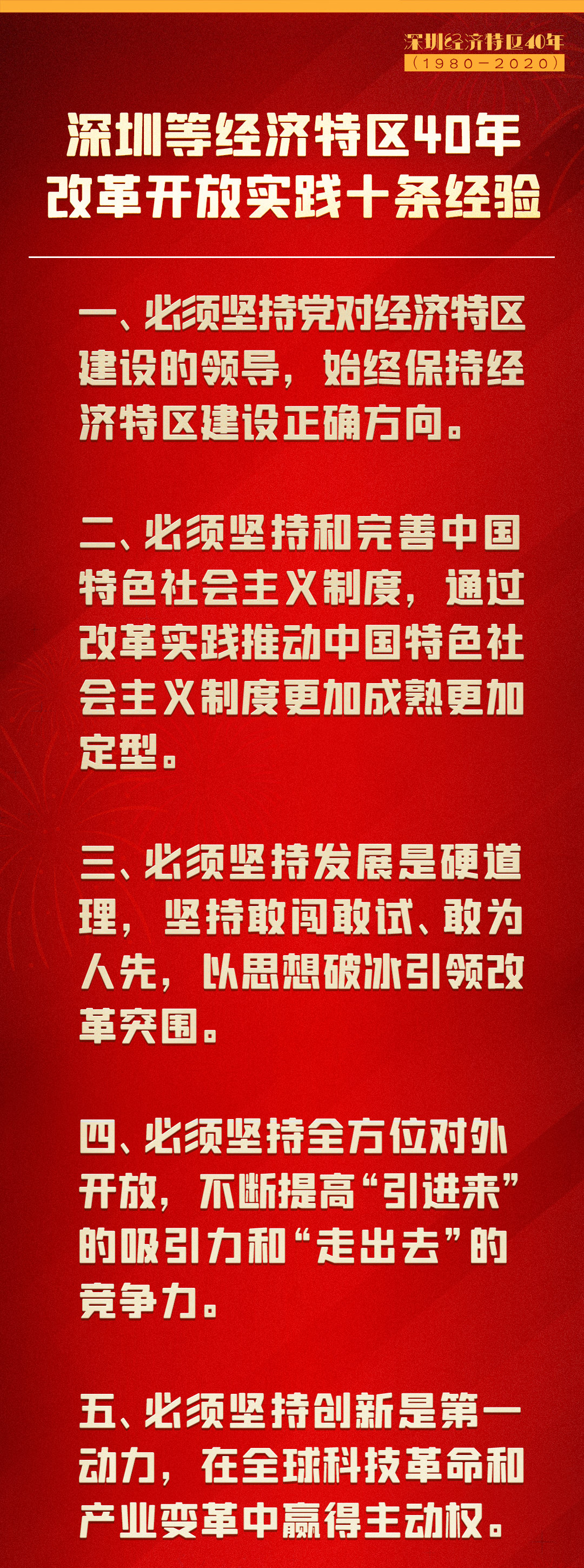 習(xí)近平強(qiáng)調(diào),以上十條,是經(jīng)濟(jì)特區(qū)40年改革開放、創(chuàng)新發(fā)展積累的寶貴經(jīng)驗,對新時代經(jīng)濟(jì)特區(qū)建設(shè)具有重要指導(dǎo)意義,必須倍加珍惜、長期堅持,在實踐中不斷豐富和發(fā)展。