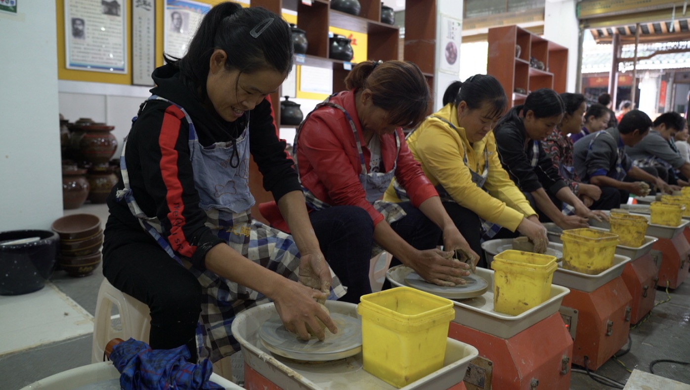 后來,母先才接受了當(dāng)時的駐村第一書記周成軍的建議,轉(zhuǎn)變經(jīng)營思路,由主營生產(chǎn)日用陶器改為陶器制作體驗(yàn)。轉(zhuǎn)型后,前來體驗(yàn)陶藝制作的游客絡(luò)繹不絕。