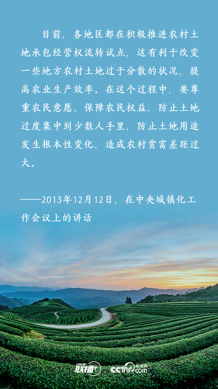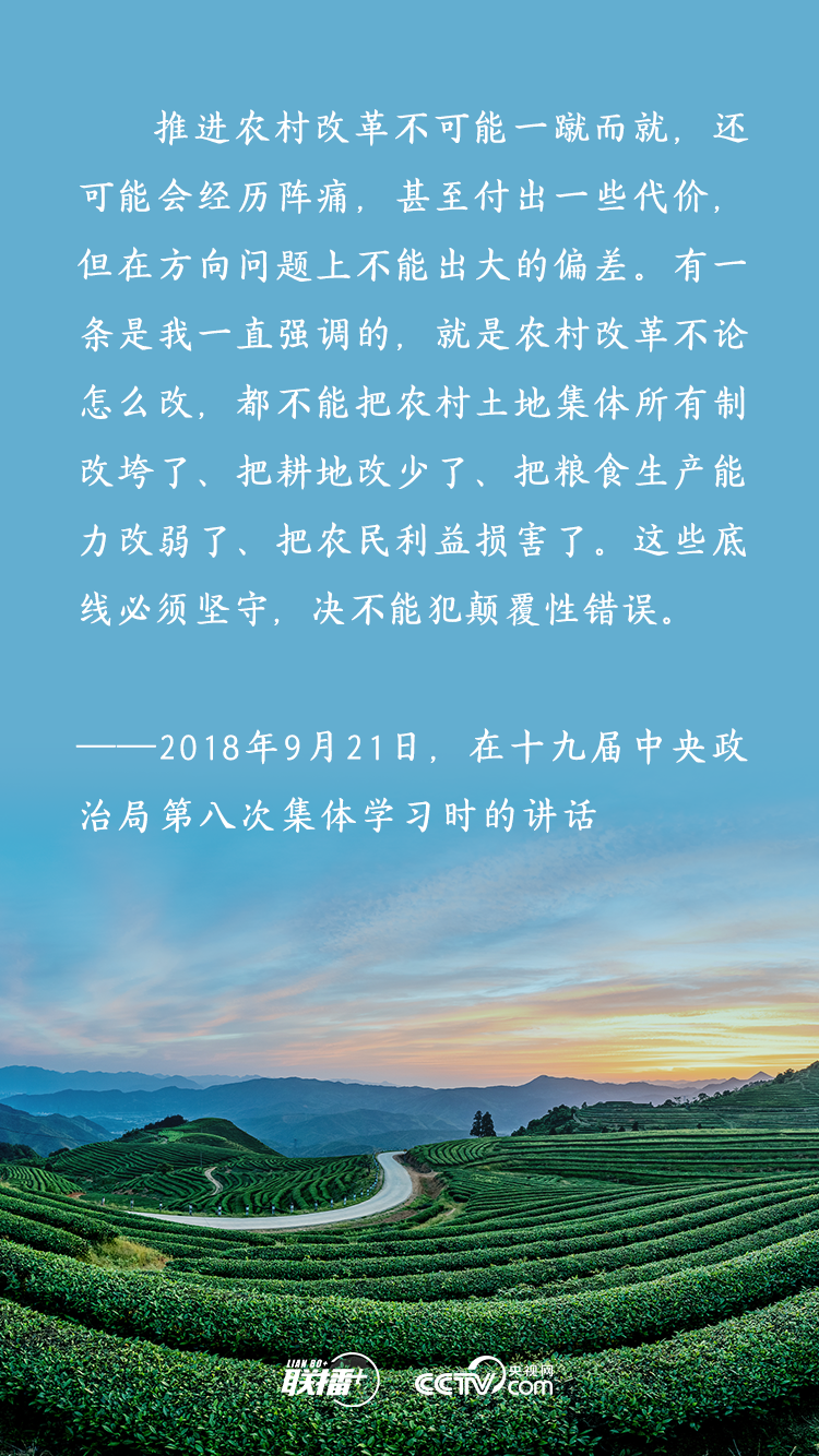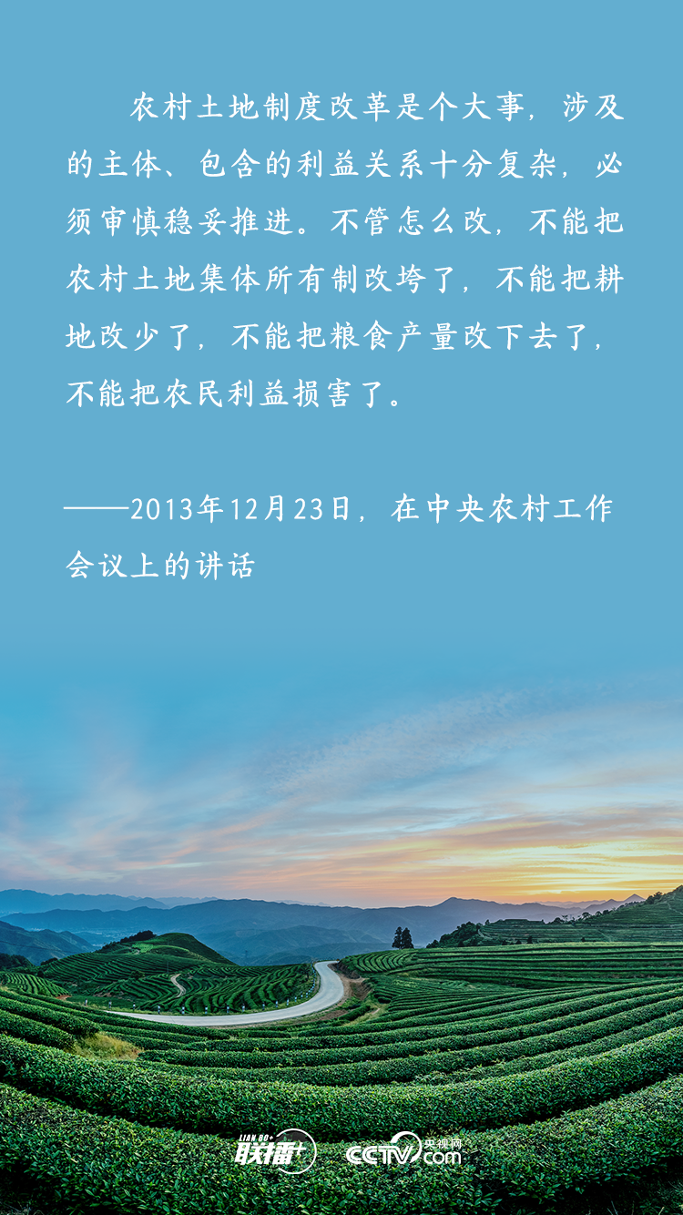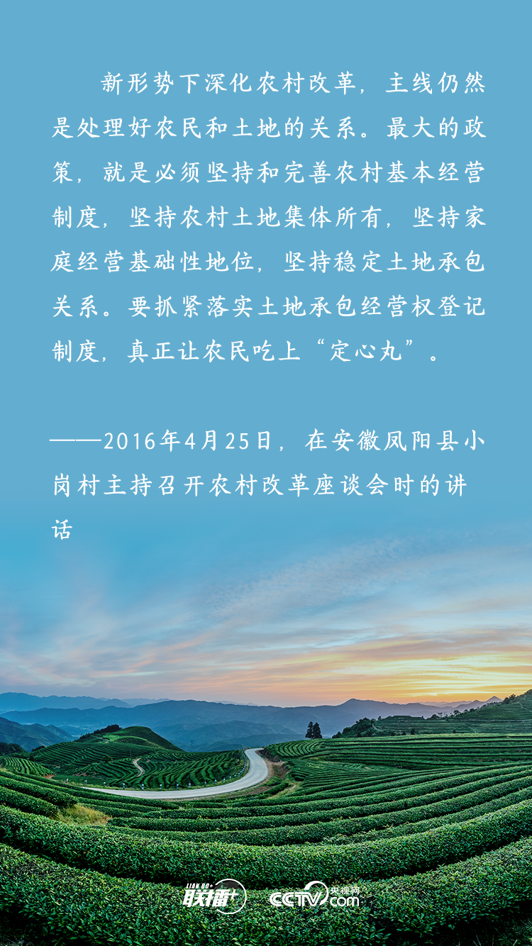 農(nóng)業(yè)農(nóng)村農(nóng)民問題是關(guān)系國計民生的根本性問題,農(nóng)村土地延包事關(guān)千家萬戶農(nóng)民切身利益,事關(guān)廣大農(nóng)村地區(qū)穩(wěn)定發(fā)展大計。黨的十八大以來,習(xí)近平總書記多次深入基層實地調(diào)研,召開多個重要會議,既從大處著眼,整體布局、謀定而動,又從小處入手,順勢而為、層層推進(jìn),為新時代推進(jìn)農(nóng)村土地制度改革、做好農(nóng)村承包地管理工作擘畫發(fā)展路徑。央視網(wǎng)《聯(lián)播+》特梳理,與您一起學(xué)習(xí)。
