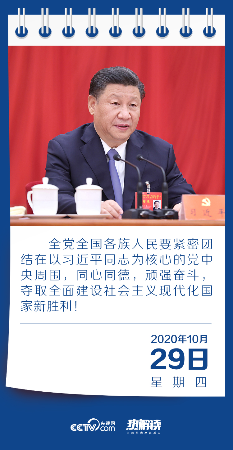 10月29日,中國共產(chǎn)黨第十九屆中央委員會(huì)第五次全體會(huì)議在金色的秋天里勝利閉幕。全會(huì)由中央政治局主持。中央委員會(huì)總書記習(xí)近平作了重要講話。