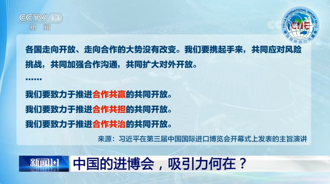 上海進(jìn)博會的吸引力就在于中國市場的吸引力、中國經(jīng)濟(jì)的吸引力,更在于中國之治的吸引力。開放、合作、團(tuán)結(jié)、共贏,中國始終這么說,更關(guān)鍵的是中國始終這么做。