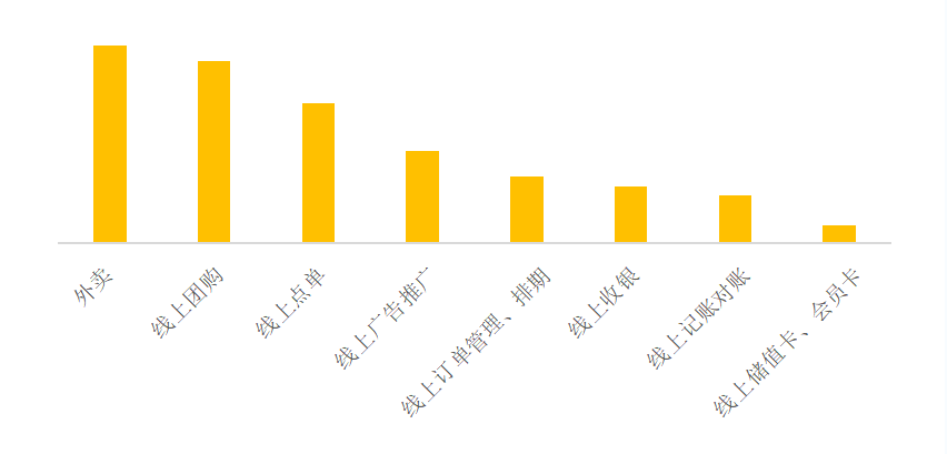 數(shù)字時代為小店發(fā)展提供了獲客、營銷等多元化營收增長動力。問卷調(diào)查顯示,小店對美團(tuán)平臺最滿意的前5項(xiàng)數(shù)字化服務(wù)分別為外賣、線上團(tuán)購、線上點(diǎn)單、線上推廣以及線上訂單管理,主要集中在獲客與營銷兩個領(lǐng)域。