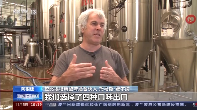 總臺記者 劉欣:在我手中拿的這一款就是即將出口到中國的阿根廷精釀啤酒。為了能夠更好地適應(yīng)中國的市場,拉比埃塔公司也是進(jìn)行了長時間的市場調(diào)研。根據(jù)中國客戶的口味,最終是選擇了包括在我手中這一款紅色蜂蜜在內(nèi)的四種阿根廷精釀啤酒。希望能夠在中國的精釀啤酒市場上也能夠占有一席之地。