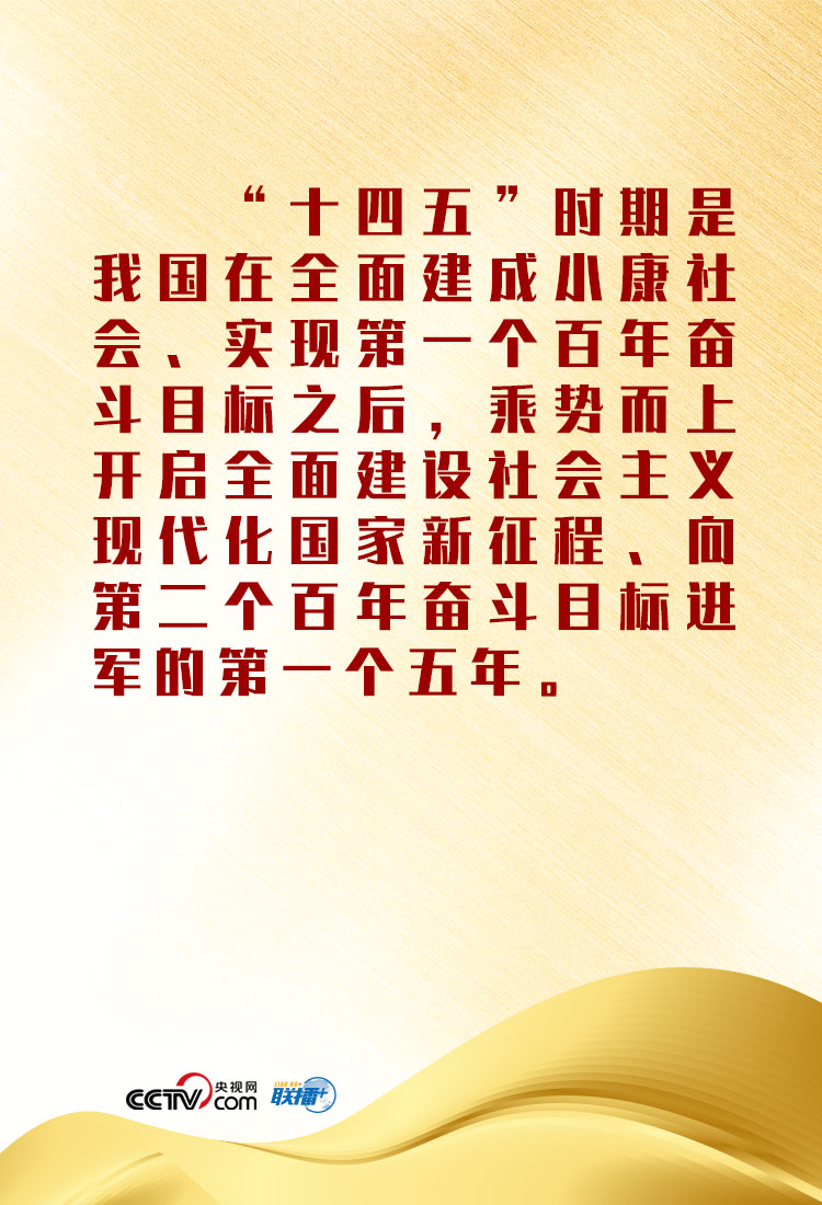 按照黨的十九大對(duì)實(shí)現(xiàn)第二個(gè)百年奮斗目標(biāo)作出的分兩個(gè)階段推進(jìn)的戰(zhàn)略安排,綜合考慮未來一個(gè)時(shí)期國(guó)內(nèi)外發(fā)展趨勢(shì)和我國(guó)發(fā)展條件,緊緊抓住我國(guó)社會(huì)主要矛盾,深入貫徹新發(fā)展理念,對(duì)“十四五”時(shí)期我國(guó)發(fā)展作出系統(tǒng)謀劃和戰(zhàn)略部署。