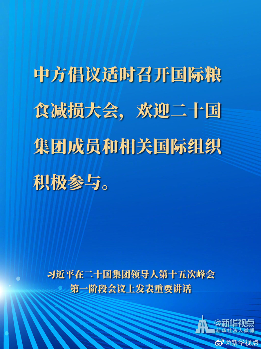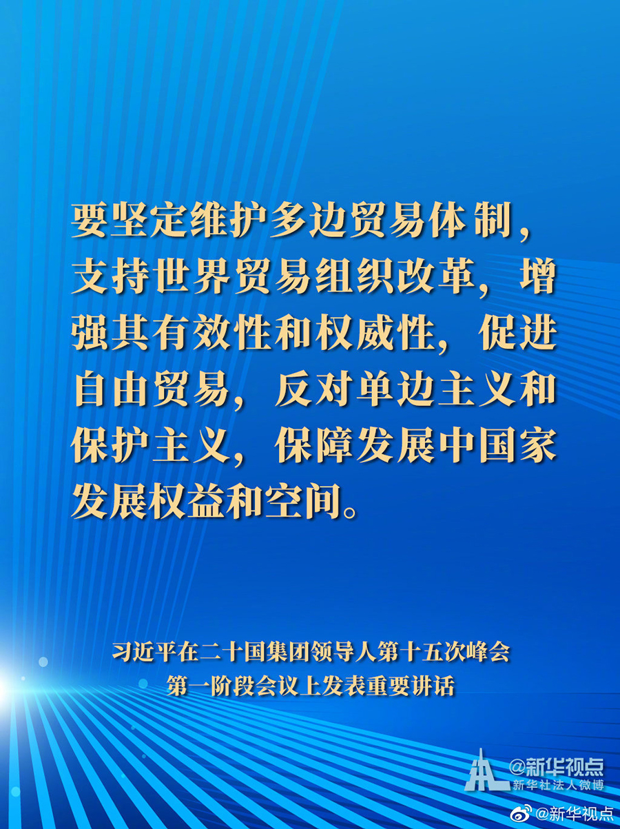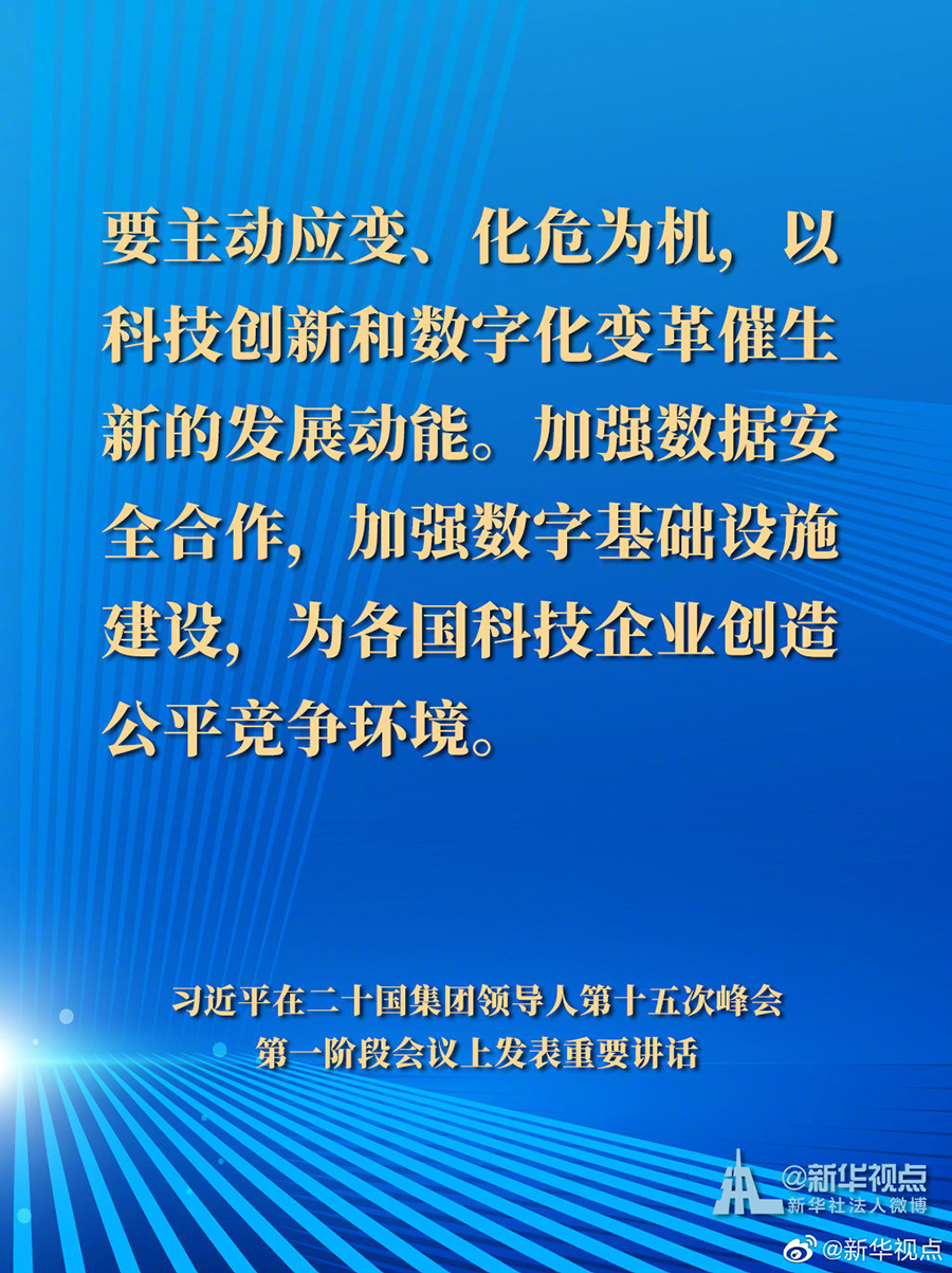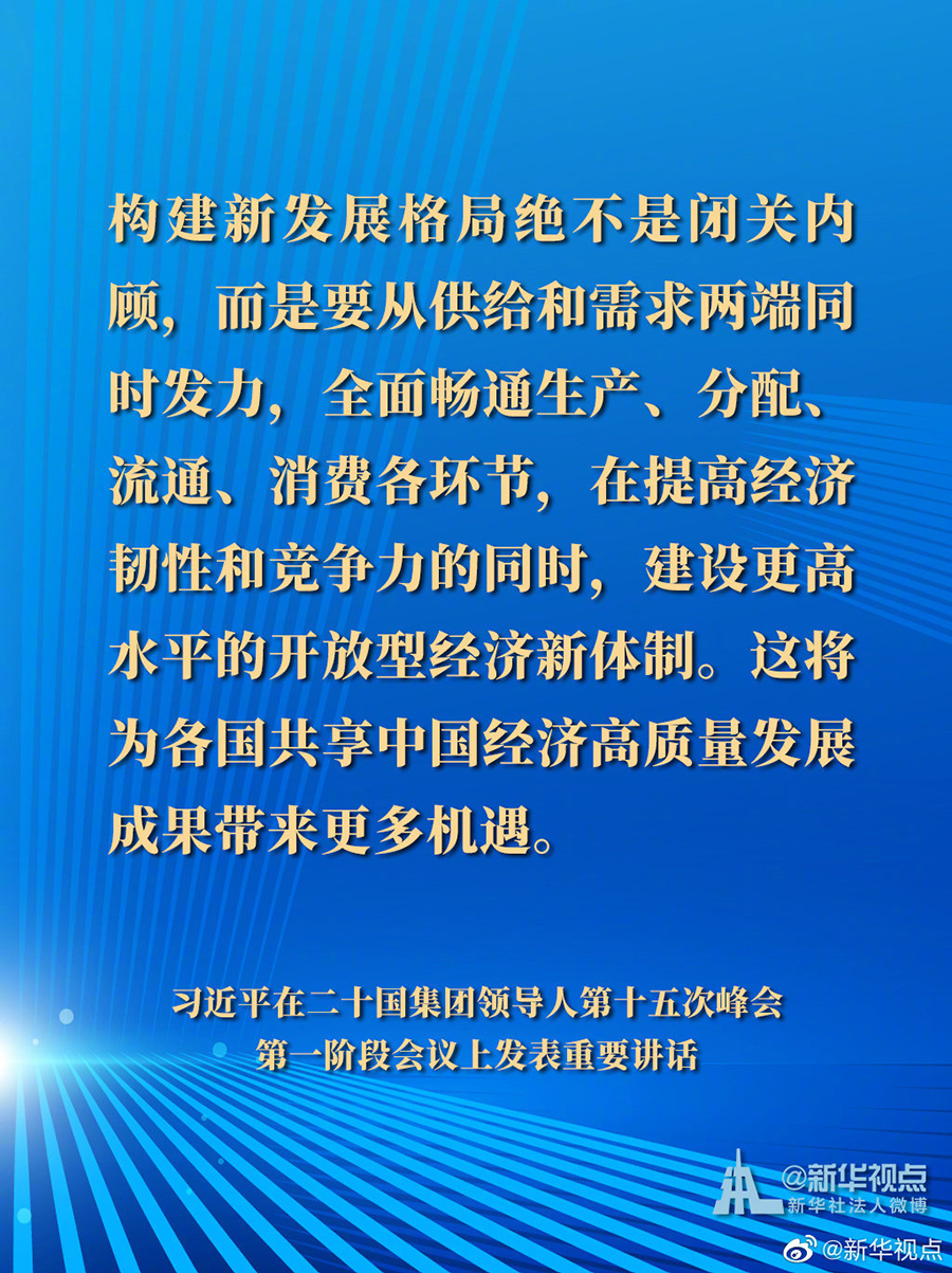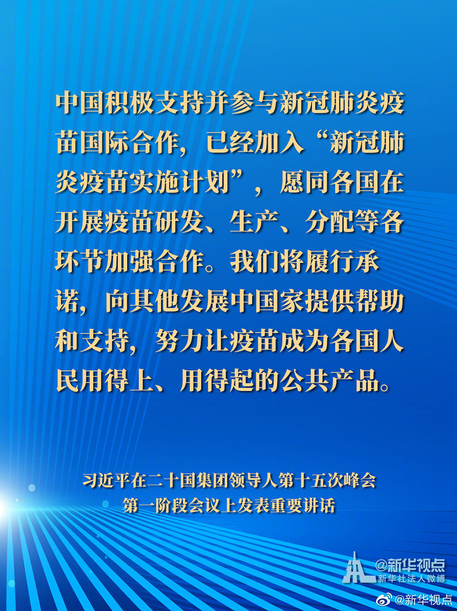 國家主席習近平21日晚在北京以視頻方式出席二十國集團領(lǐng)導人第十五次峰會第一階段會議并發(fā)表重要講話。以下是講話要點。