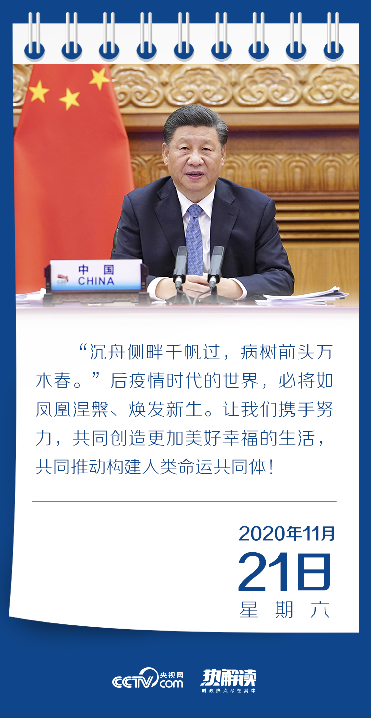 “世界是不可分割的命運共同體”,11月19日,習(xí)近平主席以視頻方式出席亞太經(jīng)合組織工商領(lǐng)導(dǎo)人對話會并發(fā)表主旨演講時深刻指出。