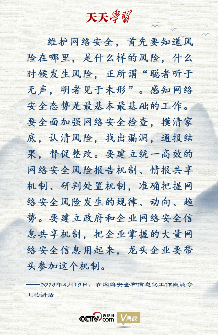 2016年4月19日,在網(wǎng)絡(luò)安全和信息化工作座談會(huì)上,習(xí)近平總書記引用“聰者聽于無聲,明者見于未形”這句古語,強(qiáng)調(diào)感知網(wǎng)絡(luò)安全態(tài)勢在信息安全領(lǐng)域的重要性,指出只有對(duì)網(wǎng)絡(luò)安全的發(fā)展趨勢進(jìn)行準(zhǔn)確預(yù)測、預(yù)警,知道風(fēng)險(xiǎn)在哪里,是什么樣的風(fēng)險(xiǎn),什么時(shí)候發(fā)生風(fēng)險(xiǎn),才能預(yù)先防范網(wǎng)絡(luò)安全風(fēng)險(xiǎn)。