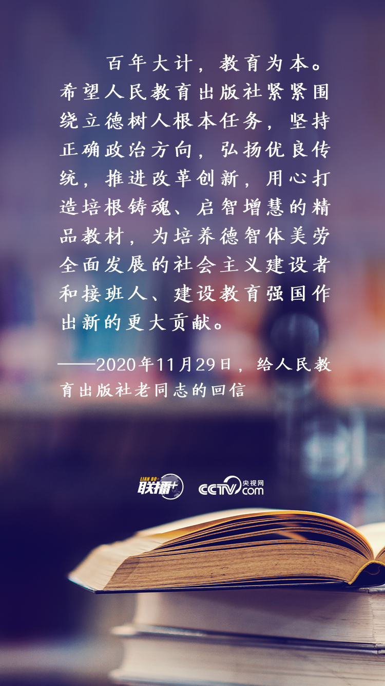 聯(lián)播+近日,習(xí)近平總書記給人民教育出版社部分離退休老同志回信。他希望人教社繼續(xù)“用心打造培根鑄魂、啟智增慧的精品教材”。