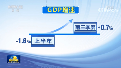 這是一張今年中國(guó)經(jīng)濟(jì)主要指標(biāo)轉(zhuǎn)正時(shí)間表,從4月份開始,工業(yè)、服務(wù)業(yè)、進(jìn)出口、消費(fèi)、投資陸續(xù)由負(fù)轉(zhuǎn)正。前三季度,GDP同比增長(zhǎng)0.7%,增速比上半年加快2.3個(gè)百分點(diǎn)。中國(guó)經(jīng)濟(jì)站穩(wěn)了腳跟、恢復(fù)了元?dú)狻?/p>