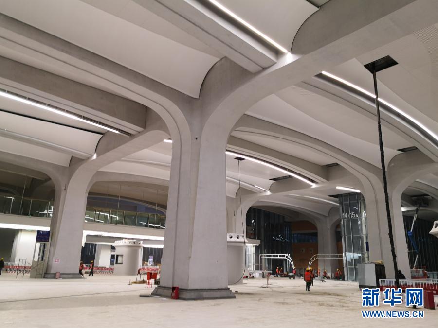 這是河北雄安站首層候車(chē)大廳清水混凝土“開(kāi)花柱”(手機(jī)照片,12月16日攝) 。新華社記者 曹?chē)?guó)廠 攝