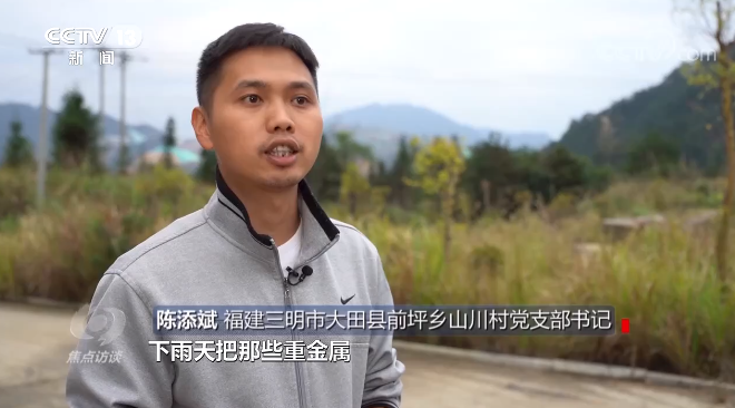 福建三明市大田縣前坪鄉(xiāng)山川村黨支部書記陳添斌:“整個村莊都是粉塵,水土流失,包括那些粉塵,下雨天把那些重金屬全部沖到莊稼地里去,莊稼的存活率不高,質(zhì)量也不好!