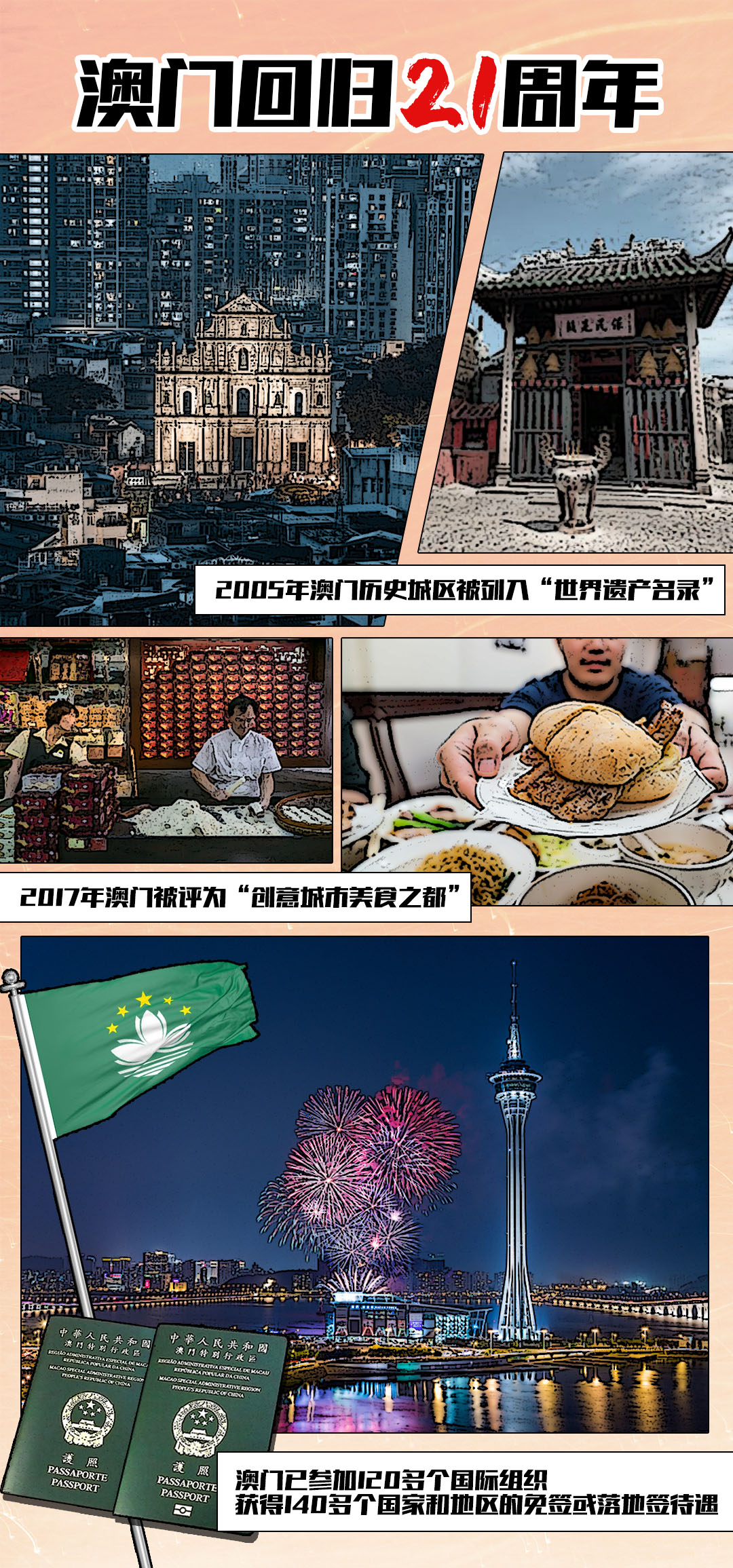 △回歸后的澳門大力改善民生,澳門居民安居樂業(yè)的獲得感、幸福感不斷增強(qiáng)。
