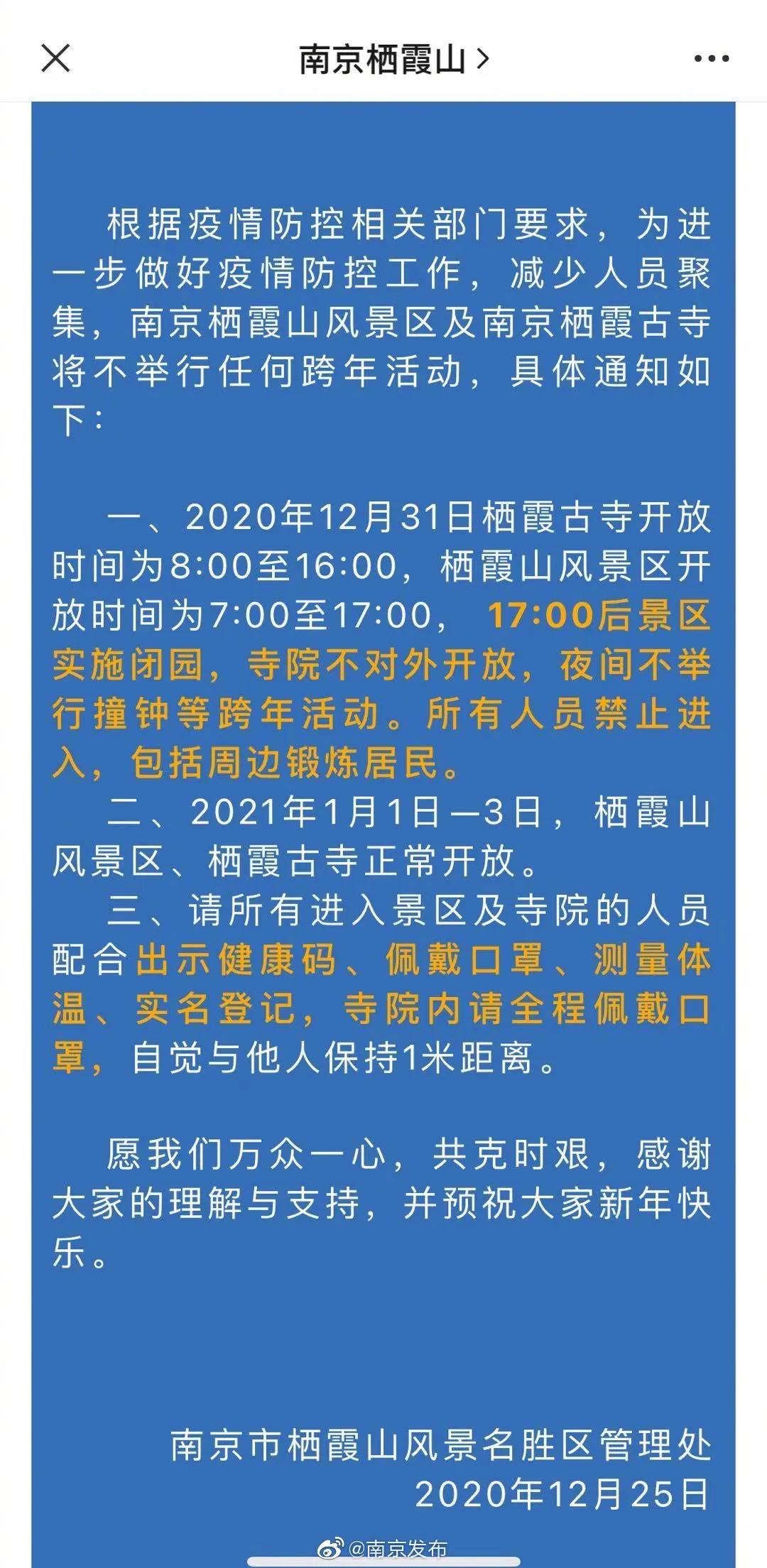 南京雞鳴寺也在其相關(guān)通知中指出,南京雞鳴寺在12月31日開放時間改為7時30分至17時,夜間不對外開放,不舉行撞鐘、迎新等跨年活動。