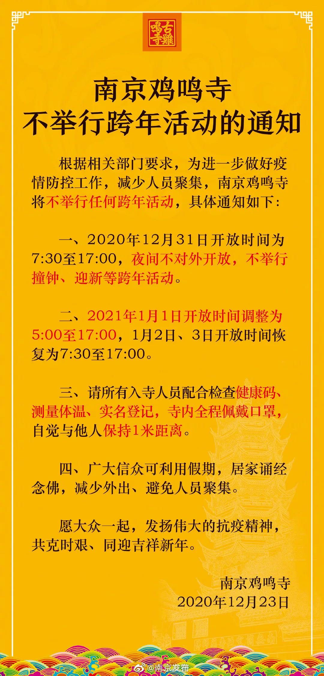 此外,南京金光禪寺也決定取消元旦、春節(jié)祈福撞鐘等任何活動。
