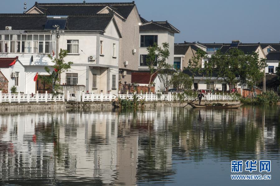 10月17日,村民在江蘇蘇州市吳江區(qū)七都鎮(zhèn)開弦弓村的河道中打撈雜物。新華社記者 楊磊 攝