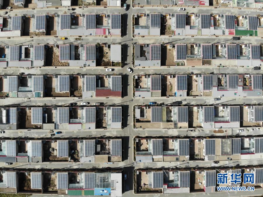 這是11月6日拍攝的青海海東市互助土族自治縣班彥新村裝有太陽能發(fā)電板的民房(無人機照片)。新華社記者 戴天放 攝