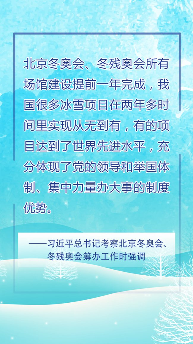 經(jīng)國序民,正其制度。制度優(yōu)勢是一個國家的最大優(yōu)勢。透過一個個可見可感的變化不難發(fā)現(xiàn),北京冬奧會、冬殘奧會籌辦工作進展順利,是我國制度優(yōu)勢的深刻彰顯。