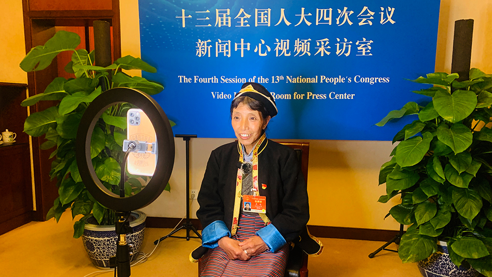 △3月6日,卓嘎在駐地接受視頻采訪。(西藏廣播電視臺扎西玉措供圖)