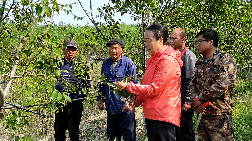 △郭素萍現(xiàn)任河北農(nóng)業(yè)大學林學院研究員,這是她在進行果樹栽植技術(shù)指導。(郭素萍供圖)