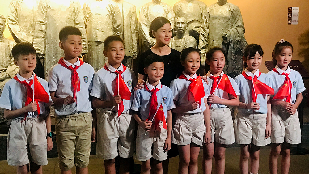△這是2019年,袁晶在南湖革命紀念館為嘉興市實驗小學的同學們講解后合影留念。今年3月5日,袁晶在首場“代表通道”上發(fā)出誠摯邀請:“歡迎大家來中國革命紅船啟航地!保ㄔЧ﹫D)