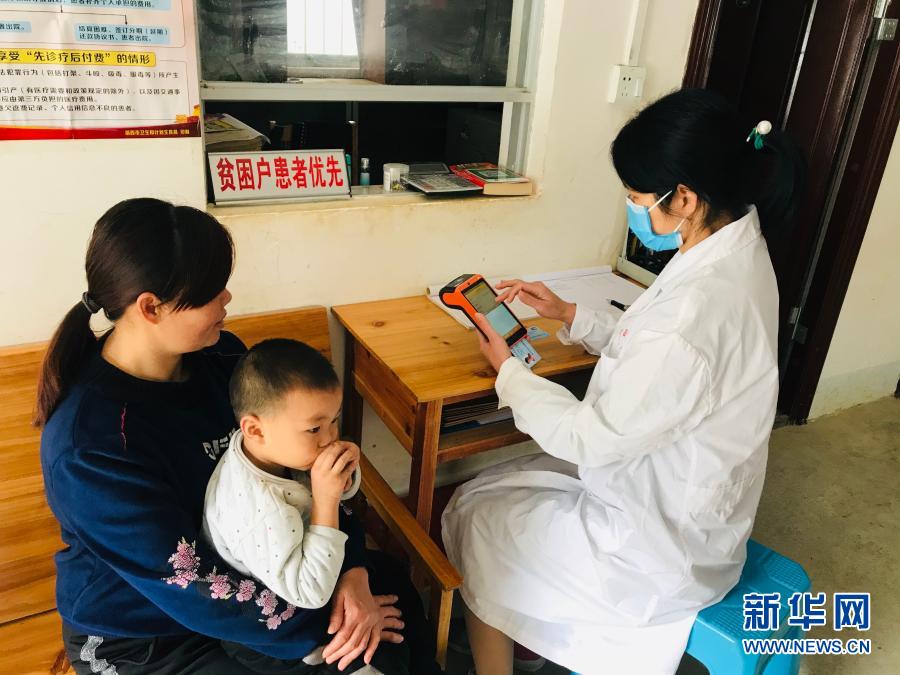 廣西樂業(yè)縣新化鎮(zhèn)百坭村群眾通過“村醫(yī)通”系統(tǒng)現(xiàn)場(chǎng)進(jìn)行醫(yī)療費(fèi)用結(jié)算(2020年2月12日攝)。新華社發(fā)(廣西壯族自治區(qū)醫(yī)療保障局供圖)