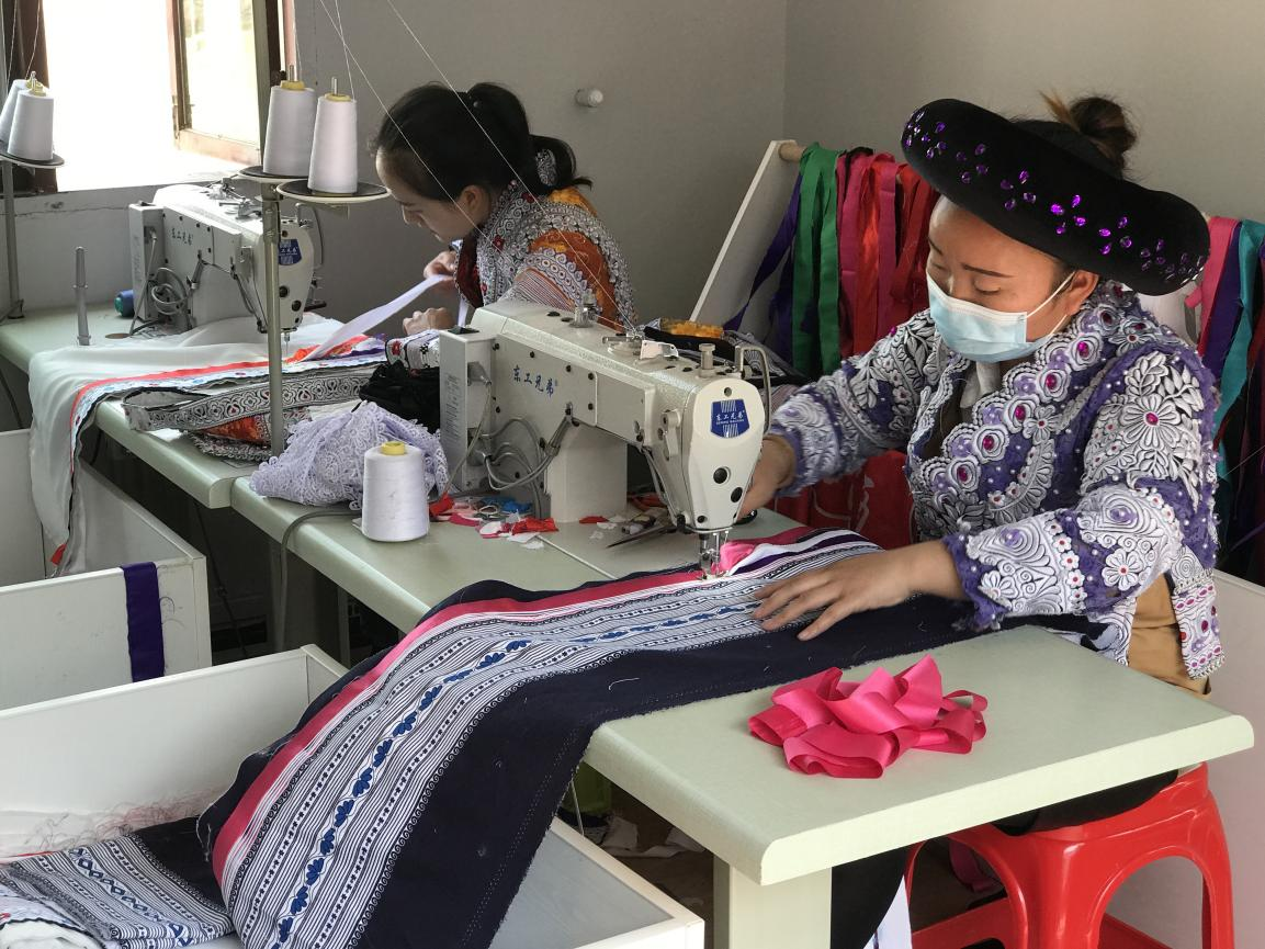 目前,該車(chē)間有刺繡車(chē)間、縫紉車(chē)間、蠟染室、設(shè)計(jì)師、裁剪室、產(chǎn)品展示間等廠(chǎng)房18間,擁有縫紉機(jī)16臺(tái)、高速繡花機(jī)2臺(tái)。解決當(dāng)?shù)厝罕娋蜆I(yè)30人,其中固定職工25人、臨時(shí)工5人。