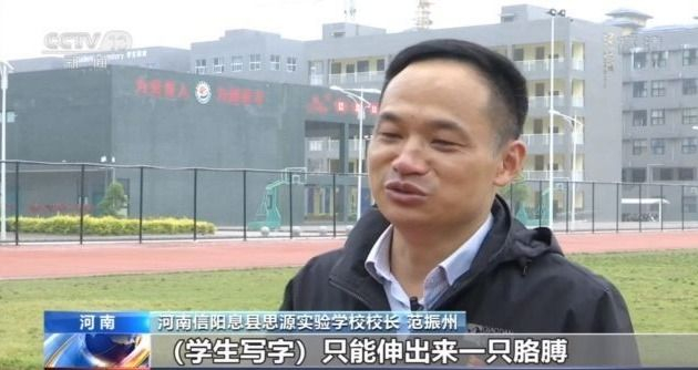 河南信陽息縣思源實驗學校校長 范振州:一個班里學生大概有100多人,坐在座位上兩個胳膊互相打架,(學生寫字)只能伸出來一只胳膊。