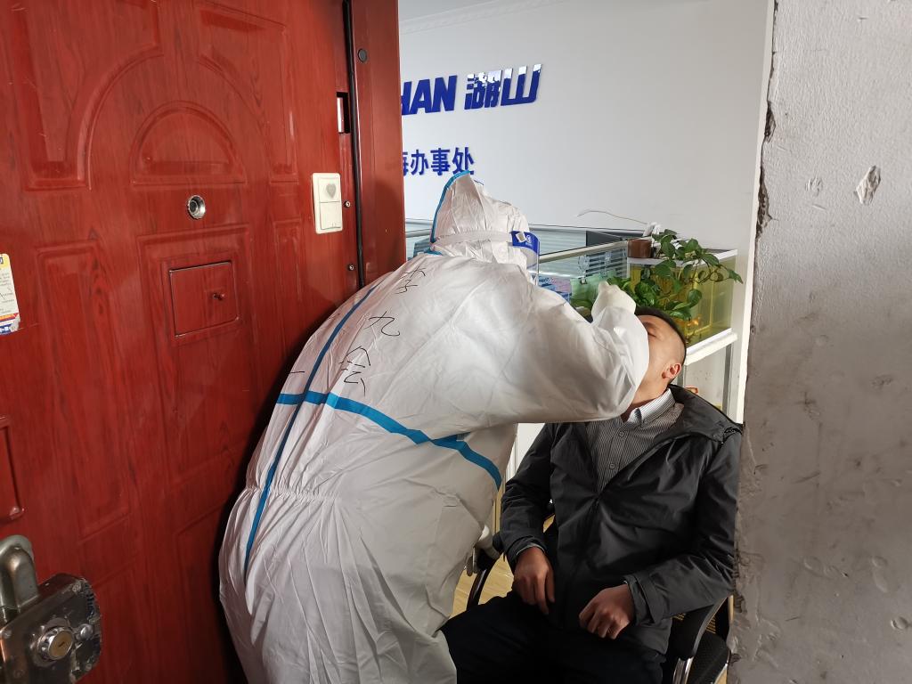 “因?yàn)榕d海路30號院是老舊小區(qū),沒有電梯,我們只能徒步上樓,最高要步行7層樓!崩罹艜f。西寧城區(qū)平均海拔2200多米,在高原穿著防護(hù)服頻繁上下樓,心肺面臨沉重負(fù)擔(dān)。入戶采樣完畢后,工作人員防護(hù)服內(nèi)全是汗,而室外只有幾攝氏度,他們經(jīng)歷著心理和生理的雙重考驗(yàn)。