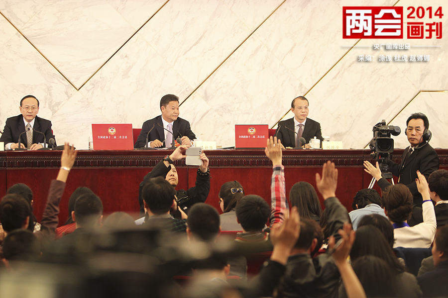 全國政協(xié)十二屆二次會議新聞發(fā)布會現(xiàn)場記者提問(央廣網記者 杜虎 攝)