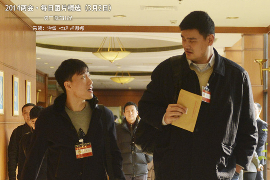 2014年3月2日,上海,政協(xié)委員姚明劉翔準(zhǔn)備前往北京參加2014年全國政協(xié)會議。(圖片來源:東方IC)