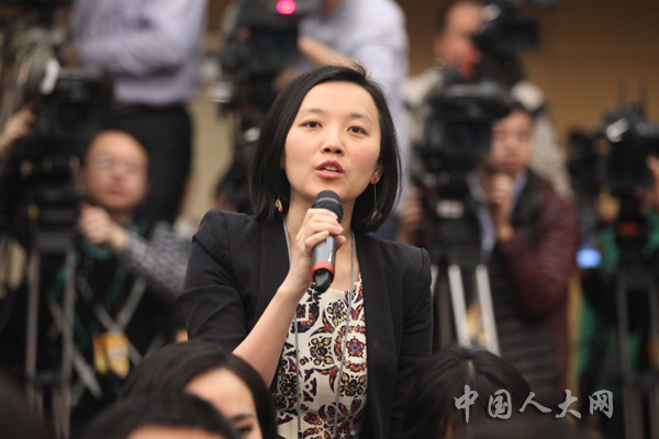 3月11日上午,十二屆全國人大二次會議在梅地亞中心舉行記者會,中國人民銀行行長周小川等五位嘉賓就“金融改革與發(fā)展”的相關問題回答中外記者的提問。圖為中國證券報、中證網記者提問。羅榮 攝