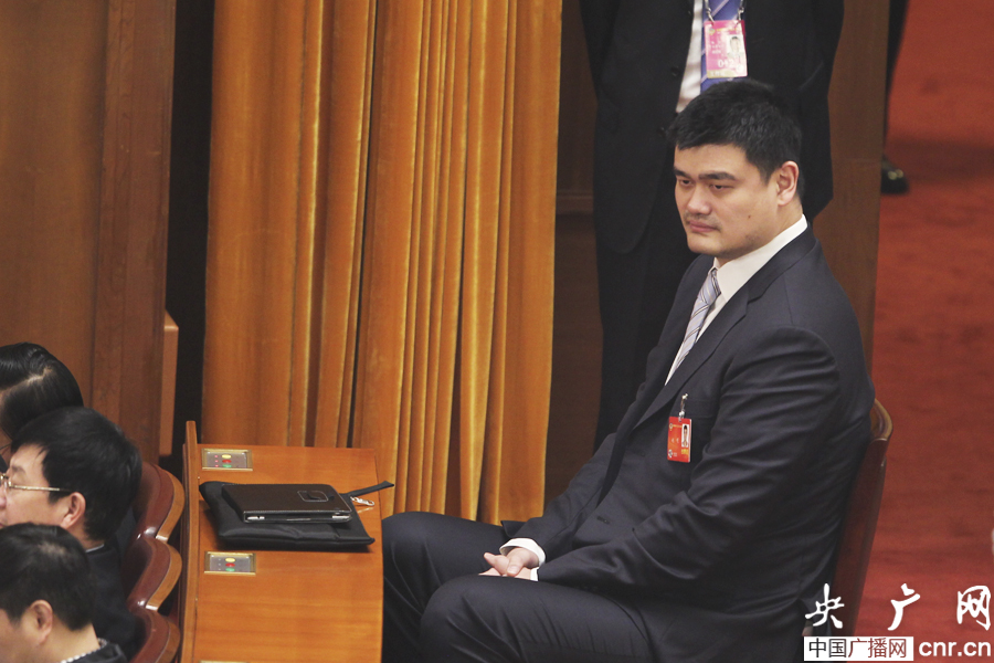 姚明參加全國政協(xié)十二屆二次會議開幕會(央廣網(wǎng)記者 杜虎 攝)